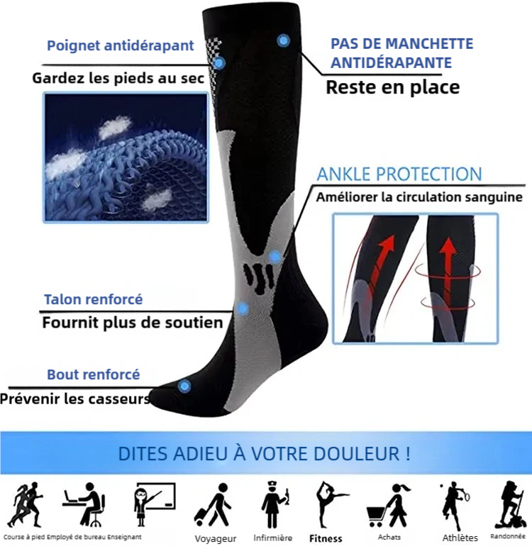 Que vous soyez voyageur, infirmier, sportif ou simplement en quête de confort, ces chaussettes sont adaptées à toutes les situations.